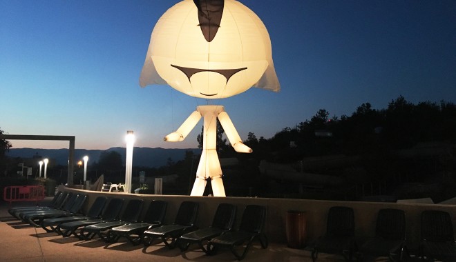 Technique : nécessite 21m3 d'hélium / hauteur : 8 mètres mais peut se baisser ponctuellement jusqu'à 6m