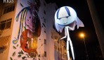 Balade interactive nocturne ou diurne pour une marionnette gracile, géante (environ 8 mètres), gonflable et lumineuse, manipulée par 2 marionnettistes.